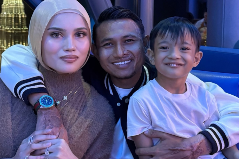 Foto itu memperlihatkan Faisal memeluk erat isteri dan anaknya, Khalish Aryan.