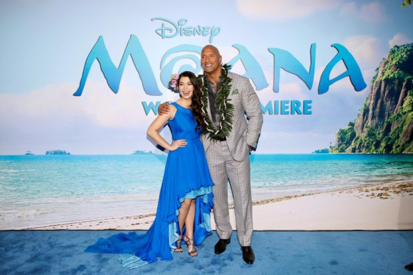 Dua pelakon yang telah menyumbangkan suara mereka untuk watak utama filem Moana iaitu Auli’i Cravalho sebagai Moana (kiri) dan Dwayne Johnson (Maui).