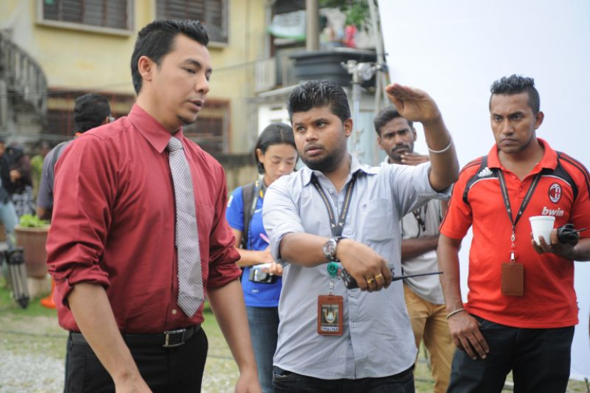 Pengarah filem 'Makrifat Cinta', Kamal G (tengah) memberikan penerangan kepada Syamsul Yusof sewaktu di lokasi penggambaran.