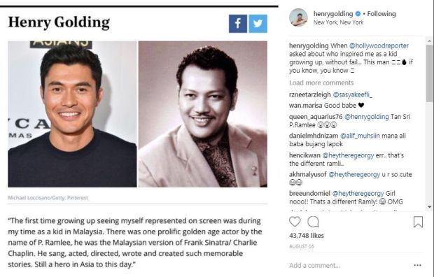 9. Pelakon utama Crazy Rich Asians, Henry Golding menjadikan seniman terkenal, Allayarham P.Ramlee sebagai inspirasinya.