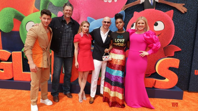 Barisan penyumbang suara untuk watak-watak utama filem animasi UglyDolls iaitu (dari kiri) Nick Jonas, Blake Shelton, Emma Roberts, Pitbull, Janelle Monae dan Kelly Clarkson.
