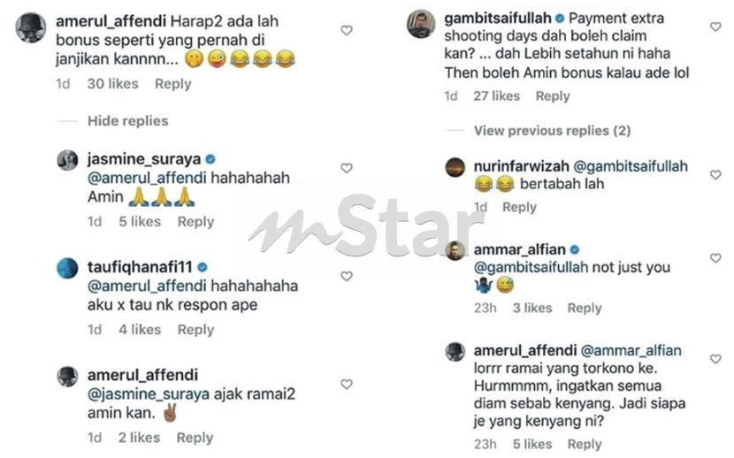 "Saya sedar mengenai komen-komen mereka itu dan terus buat group WhatsApp yang ada semua pelakon. Saya jelaskan dan semuanya sudah selesai.