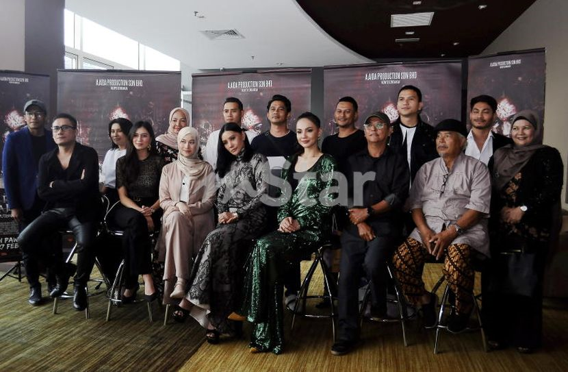 Penerbit, A. Aida (empat dari kiri) bersama barisan pelakon filem Ratu Kala Jengking: Puteri Keranda.