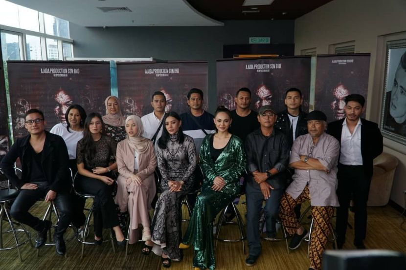Penerbit, A. Aida (empat dari kiri), pengarah Bade Azmi (dua dari kanan) bersama barisan pelakon.