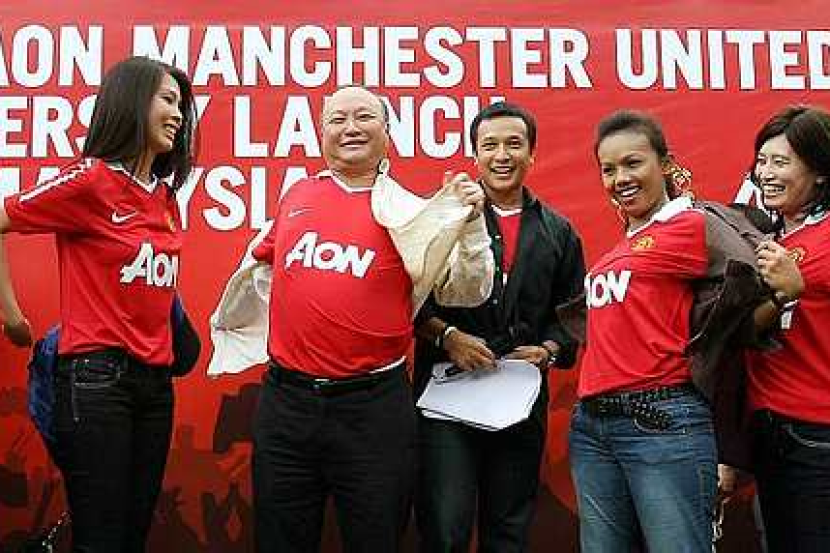 Mak (dua dari kiri) menayangkan jersi baru MU di Lot 10, Bukit Bintang, sebentar tadi. - Foto THE STAR AZHAR MAHFOFKUALA LUMPUR: AON, syarikat peneraju penasihat risiko dan perunding modal insan antarabangsa meraikan komitmen selaku penaja baru pasukan Manchester United (MU) dengan memperkenalkan jersi terkini kelab gergasi bola sepak England itu pada Khamis di sini.Ribuan kakitangan AON di seluruh Asia termasuk Hong Kong, Malaysia, Singapura dan Vietnam bersama-sama memperkenalkan jersi baru itu serentak di negara masing-masing. Bermula 1 Jun lalu, syarikat berkenaan adalah penaja utama jersi MU dengan perjanjian kerjasama global dan tajaan jenama selama empat tahun.Pemain Red Devils akan menyarung jersi baru dengan logo AON pada permulaan kempen Liga Perdana Inggeris musim 2010/2011 yang akan membuka tirainya bulan depan.Menurut Ketua Pegawai Eksekutif Broker Insuran AON (M) Sdn.Bhd, Mak Chee Keong, mereka merancang melakukan pelbagai kerja amal di peringkat global untuk mempromosikan pembangunan belia dan komuniti sihat."Sama seperti AON, MU adalah bertaraf global. Kami berkongsi matlamat dalam mencapai kecemerlangan. Kerjasama ini akan membantu kami memperkasakan syarikat di benua Asia di mana MU adalah jenama gah," katanya semasa berucap pada majlis memperkenalkan jersi Red Devils itu di sini.Pada majlis itu juga, AON Malaysia menyampaikan sumbangan cek berjumlah RM15,000 kepada Yayasan Sunbeams Home, rumah penjagaan anak yatim piatu, mangsa penderaan, kanak-kanak terabai atau dari keluarga bermasalah.Turut hadir pada kemuncak acara itu adalah pelakon Angel Wong Chui Ling dan ahli-ahli kelab peminat MU.MU akan bertemu Newcastle United pada perlawanan pembukaan EPL musim baru, 14 Ogos ini di Old Trafford.