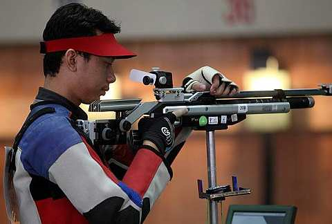 Mohd Nurrahimin gigih menjalani latihan terakhir sebelum acara menembak bermula pada Sabtu. Foto: GLENN GUAN/The Star