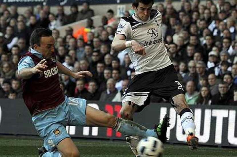 Carlton Cole hampir menggegar gawang untuk West Ham tetapi sepakannya berjaya ditepis penjaga gol Spurs, Heurelho Gomes.