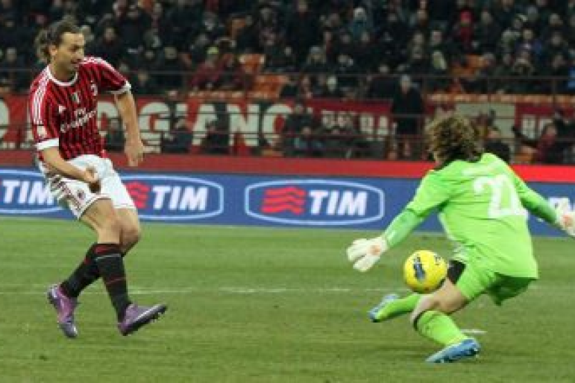 Pemain Sweden yang baru dinobatkan sebagai Pemain Terbaik Serie A 2011, Zlatan Ibrahimovic mengukuhkan kedudukan Milan dengan jaringan ketiga pada minit ke-84.