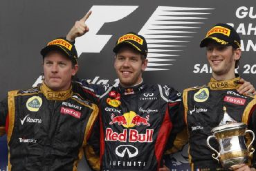 Rakan sepasukan Raikkonen, Romain Grosjean menduduki tempat ketiga, diikuti rakan sepasukan Vettel dalam pasukan Red Bull, Mark Webber di kedudukan keempat.