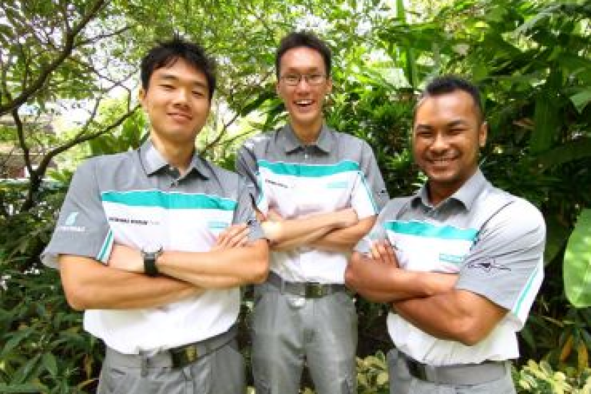 Farique (kanan) bersama Ang (tengah) serta Melvin bergambar selepas sidang media pasukan Petronas Syntium sempena MMER 2012. Foto: RAYMOND OOI/ The Star
