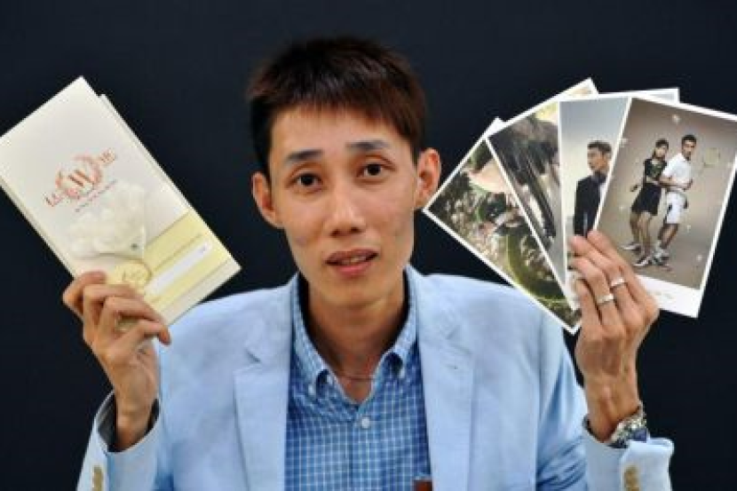 Abang Lee Chong Wei, Chong Hoon memegang kad jemputan perkahwinan adiknya yang akan diadakan pada 9 November ini. - Foto THE STAR