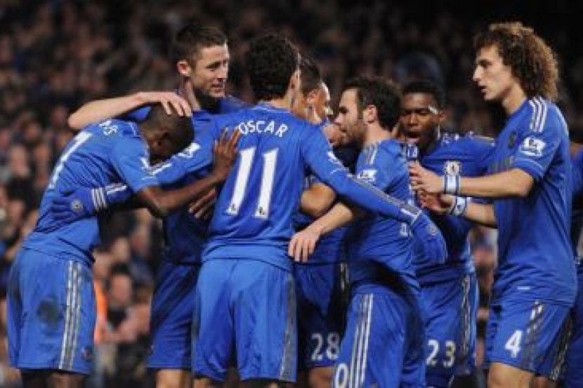 Pemain-pemain Chelsea meraikan kemenangan 5-4 ke atas Man United pada aksi Piala Liga, Khamis.SEMBILAN gol, 10 layangan kad kuning, tiga sepakan penalti adalah sebahagian daripada drama yang menyaksikan Chelsea berjaya membalas dendam ke atas Manchester United dengan menewaskan bekas juara Inggeris itu 5-4 dalam perlawanan pusingan ke-4 Piala Capital One awal pagi Khamis.Hanya Ahad lalu, kedua-dua pasukan bertembung dalam perlawanan Liga Perdana yang menyaksikan United menang secara penuh kontroversi 3-2. Tapi kali ini Chelsea berjaya membalas dendam apabila mereka berjaya menyekat kemenangan berganda United dengan menjaringkan gol pada masa kecederaan sebelum tempoh penuh perlawanan tamat sekaligus memaksa perlawanan dimainkan dalam masa tambahan 30 minit.Dalam tempoh itu mereka menjaringkan dua gol lagi untuk menumpaskan United 5-4.
