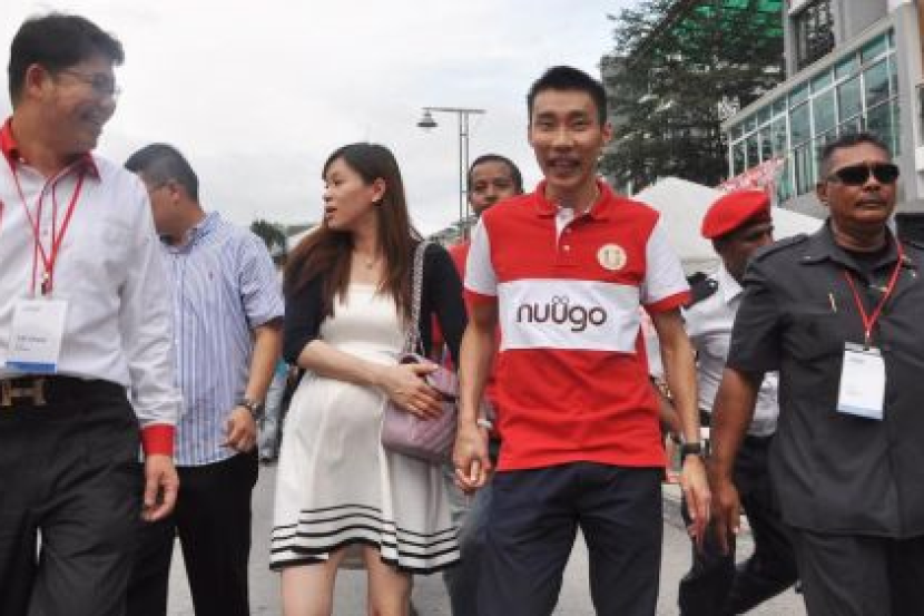Jaguh Badminton Negara Datuk Lee Chong Wei dan isteri Datin Wong Mew Choo ketika hadir ke Majlis Sambutan Tahun Baru Cina Bersama Pemain Badminton Nombor Satu Dunia itu di sini, Sabtu. -Foto BERNAMA