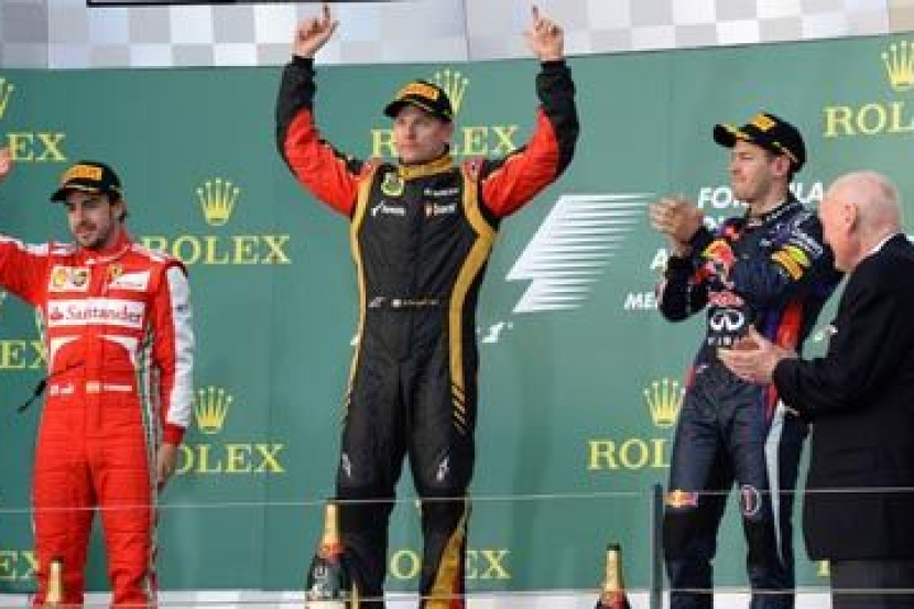 Raikonnen berjaya memintas pelumba Ferrari, Fernando Alonso dan juara dunia daripada pasukan Red Bull Sebastian Vettel.
