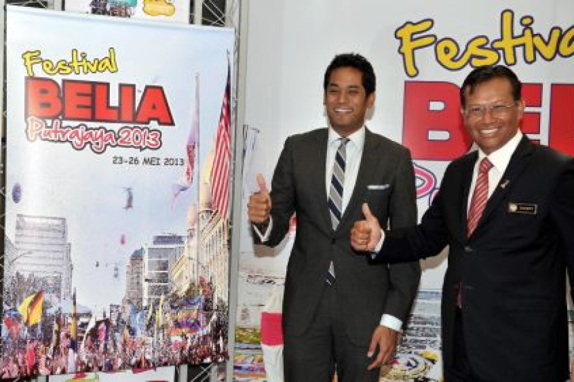 Menteri Belia dan Sukan, Khairy Jamaluddin (dua, kanan) bersama Menteri Komunikasi dan Multimedia, Datuk Seri Ahmad Shabery Cheek (kanan) menunjukkan isyarat bagus selepas Majlis Serah Tugas Menteri Belia dan Sukan di Kementerian Belia dan Sukan di Putrajaya pada Selasa.- Foto BERNAMA.