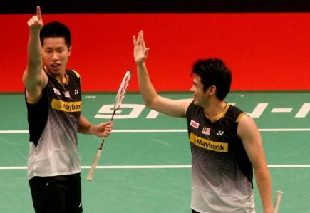 Pasangan beregu Malaysia, Goh V Shem dan Lim Kim Wah meraikan kemenangan berjaya menewaskan pasangan Jerman Ingo Kindervater dan Johannes Schoettler dalam perlawanan Piala Sudirman di Stadium Bukit Jalil pada Selasa. Pasukan negara bagaimanapun tewas dalam persaingan sengit 2-3 di tangan Jerman sekaligus gagal ke suku akhir -Foto M. Azhar Arif/The StarKUALA LUMPUR: Malaysia tumpas di tempat sendiri apabila gagal mara ke pusingan suku akhir Kejohanan Badminton Piala Sudirman 2013 setelah tewas dengan pasukan Jerman 3-2 pada pusingan peringkat Kumpulan C pada Selasa.Langkah tempang Malaysia bermula dengan kekalahan pertama melalui beregu campuran nombor lima dunia Chan Peng Soon/Goh Liu Ying yang mengejutkan banyak pihak termasuk ketua jurulatih perseorangan negara, Rashid Sidek dan pemain nombor satu dunia, Datuk Lee Chong Wei. "Beregu Chan/Goh mungkin merasa sedikit tekanan dan gementar kerana mereka merupakan pasukan Malaysia yang pertama masuk ke gelanggang hari ini dan saya harap setiap pemain yang tewas akan menilai punca kekalahan mereka."Saya berharap mereka dapat terus meningkatkan keyakinan dan mutu persembahan pada pusingan seterusnya dan para pemain lain terus fokus serta tidak merasa tertekan dengan keadaan ini," kata Chong Wei ketika ditemui pemberita selepas perlawanan berkenaan, di Stadium Putra, Bukit Jalil.Pasangan Chan/Goh gagal memberikan mata kepada pasukan negara apabila tewas kepada pasangan Fuchs Michael/Michels Birgit 17-21, 21-18 dan 17-21."Rintangan angin yang tidak menentu memberikan kekalahan kepada kami hari ini, kami cuba mengejar lawan pada set kedua namun tidak dapat mengekalkan kejuaraan apabila tewas pada set ketiga," katanya.Sementara itu, Chan berkata beliau merasakan sedikit tekanan berikutan menjadi pasangan yang diletakkan harapan oleh para peminat bulu tangkis negara dan berharap kekalahan mereka hari ini tidak melemahkan semangat pasukan negara mengumpul mata.Kedua-dua mereka berpendapat pihak lawan dapat mengatasi tekanan yang cuba diberikan dengan baik dan terus fokus terhadap permainan.Namun episod kekalahan Malaysia tidak terhenti di situ sahaja apabila perseorangan wanita Tee Jing Yi tewas mudah kepada Konon Olga 12-21 dan 14-21.Harapan peminat bulu tangkis negara musnah apabila beregu wanita Woon Khe Wei/Vivian Hoo Kah Mun yang dijangka bakal menyelamatkan Malaysia untuk ke peringkat suku akhir tewas sengit kepada Michels Birgit/Golsizewski Johanna 21-16,16-21 dan 21-18. Sementara itu, beregu lelaki kedua negara, Goh V Shem/Lim Khim Wah gembira dengan kejayaan menyumbang satu mata kepada negara dengan kemenangan 21-16 dan 23-21 ke atas beregu Kindervater Ingo/Schoettler Johanne."Kami akui agak gementar ketika terikat 20-20 pada set kedua namun kami tidak mahu ia mengganggu emosi kerana kami hanya memberikan fokus sepenuhnya terhadap permainan."Lawan kami memberikan tentangan sengit pada perlawanan hari ini dan kemenangan tersebut merupakan satu kebanggaan buat kami," kata Lim yang pernah ditewaskan lawan sama pada pusingan kedua Terbuka Jerman, Mac lalu.Mata kedua Malaysia dikumpul melalui Chong Wei yang berjaya mengumpul mata pertama negara menewaskan Domke Dieter 21-18 dan 21-18. -BERNAMA