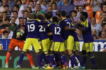 Valencia: Guaita 5, Barragan 5, Rami 2, Mathieu 4, Guardado 5, Fuego 5, Banega 6, Feghouli 5, Fede 4, Canales 6, Postiga 5. (simpanan): Costa 4, Pabon 6, Bernat 6.