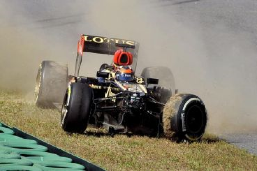 Raikonnen hilang kawalan sekaligus menyebabkan jentera Lotusnya mengalami kerosakan teruk.