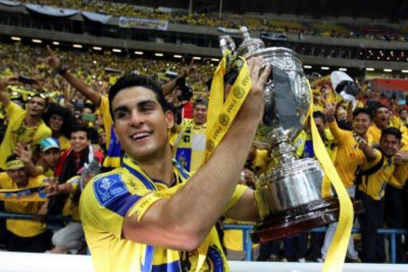 Matias Conti menjulang trofi Piala Malaysia apabila Pahang menewaskan Kelantan dengan 1-0 dalam perlawanan akhir di Stadium Shah Alam di Shah Alam, malam Ahad. Foto S.S. KANESAN / THE STAR
