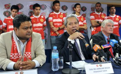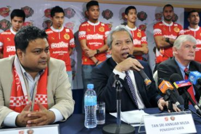 Annuar Musa (tengah) hadir pada sidang media bagi memperkenalkan pemain-pemain The Red Warriors (TRW 2014 ) yang akan beraksi pada saingan Liga Malaysia dan Piala AFC 2014.