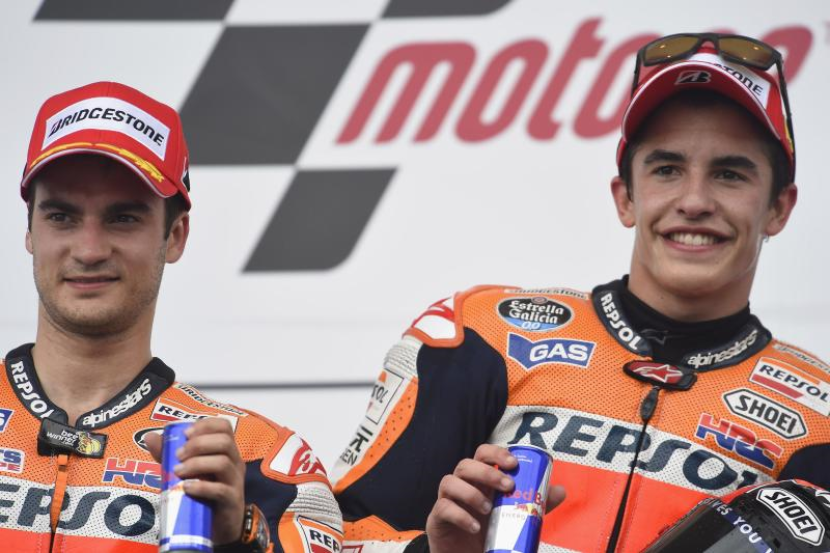 DUA pelumba repsol Honda menguasai kedudukan pertama dan kedua pada perlumbaan Kejuaraan Motosikal Dunia (MotoGP) di Austin, Amerika Syarikat, lewat Ahad malam.