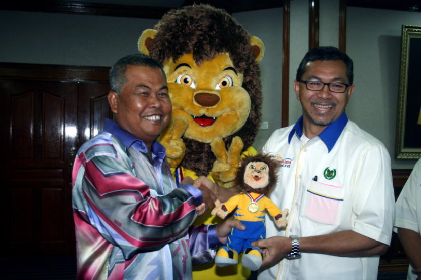 Menteri Besar Terengganu Datuk Seri Amad Said (kiri) menerima cenderahati berupa maskot Sukma daripada Azlan Man pada majlis kunjungan hormat Menteri Besar Perlis dan rombongan ke Terengganu baru-baru ini.
