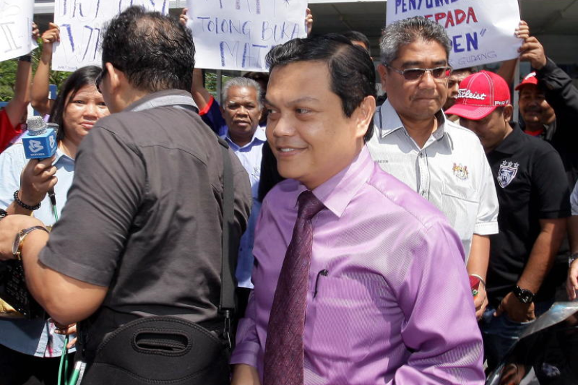 Pengurus Pasukan Johor Darul Ta'zim (JDT) II, Onn Jabbar disambut oleh penyokong-penyokongnya selepas memberi keterangan berhubung insiden kekasaran terhadap pengadil selepas perlawanan JDT II menentang UiTM FC di Ibu Pejabat Polis Daerah Seri Alam, Pasir Gudang pada Selasa.