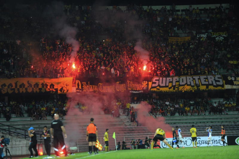 Penyokong Perak mencetuskan provokasi dengan membaling suar ke dalam padang selepas Perak tewas dengan jaringan 0-1 dalam perlawanan Liga Super 2014 Perak bertemu JDT di Stadium Perak.
