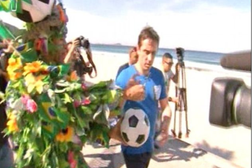 Di dalam sebuah gambar yang tersebar di Twitter, Neville kelihatan marah memandang jurukamera itu sambil turut diekori oleh seorang lelaki yang berpakaian menggunakan bendera Brazil dari hujung kepala hingga hujung kaki. - Daily Mail