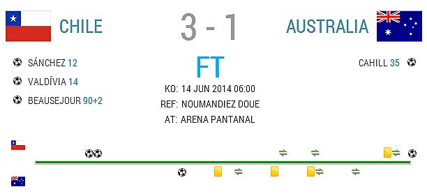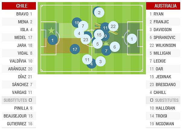 BERIKUT merupakan statistik perlawanan Chile menentang Australia.