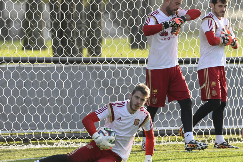 Penjaga gol Sepanyol: De Gea (kiri), Reina dan Casillas (kanan).