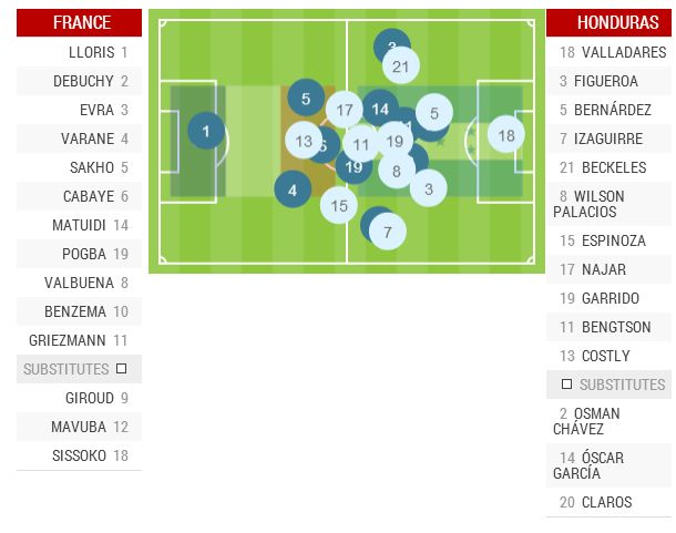 BERIKUT merupakan statistik perlawanan Perancis menentang Honduras.