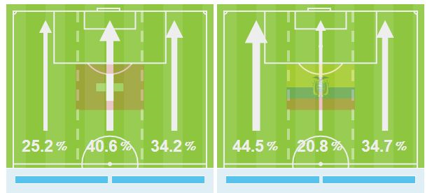 Arah serangan sepanjang perlawanan.
