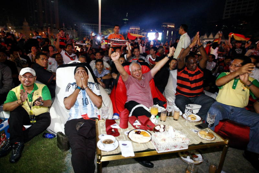 Kemeriahan menyaksikan pasukan pilihan masing-masing pada perlawanan akhir Piala Dunia 2014 di antara Jerman dan Argentina turut disaksikan oleh Perdana Menteri, Datuk Seri Najib Tun Razak yang menyokong pasukan pilihan Jerman tiba di Dataran Merdeka lebih kurang pukul 2.45 pagi, diiringi Menteri Belia dan Sukan, Khairy Jamaluddin.
