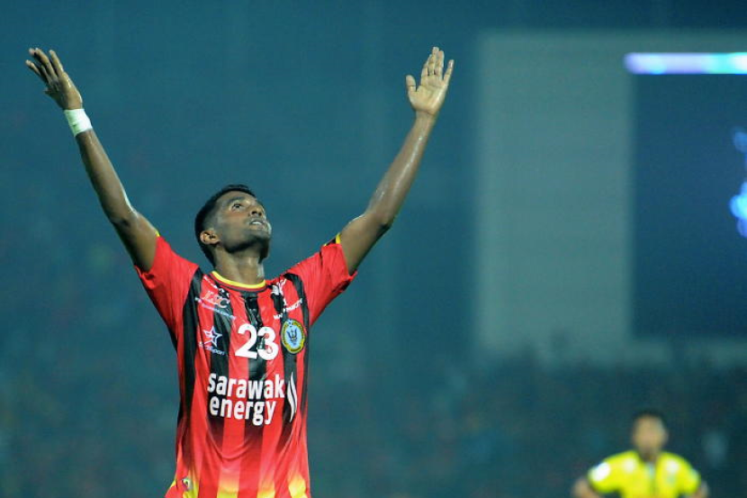 S. Chanthuru ketika meraikan gol ketiga Sarawak. Foto: BERNAMA