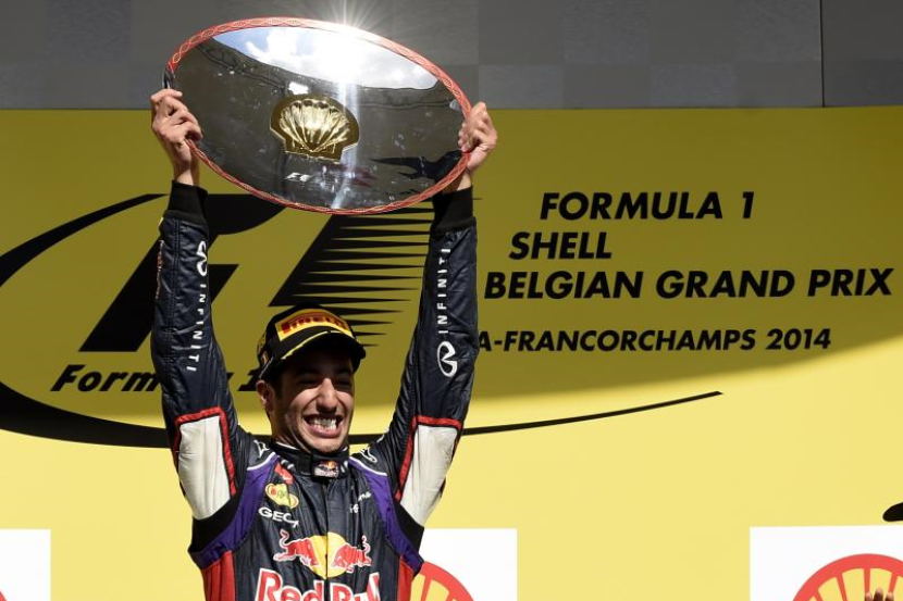 Ricciardo mendahului pencabarnya Nico Rosberg (Mercedes) dengan 3.383 saat dalam perlumbaan di litar Spa-Francorchamps di Spa, Belgium.