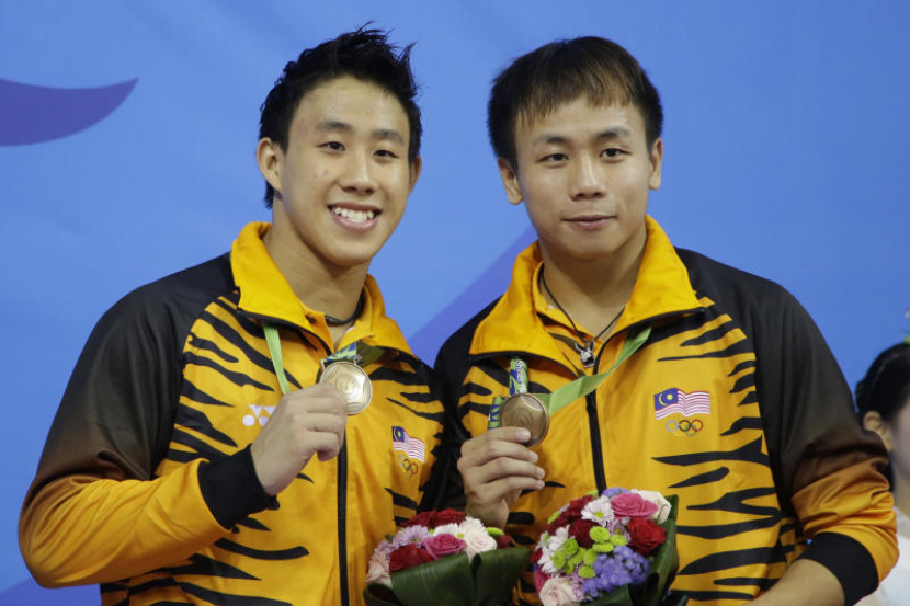 Pasangan penerjun Yiwei dan Tze Liang yang meraih gangsa untuk negara pada Isnin.