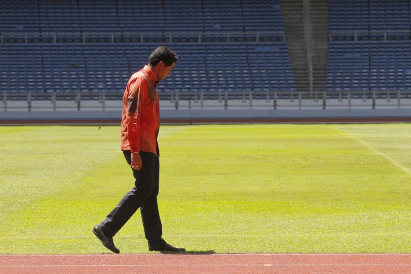 Menteri Belia Dan Sukan, Khairy Jamaluddin memeriksa keadaan padang sebelum proses membaik pulih tahun lalu.