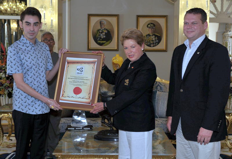Awal hari ini, putera raja berusia 24 tahun itu menerima anugerah itu di Istana Bukit Serene daripada naib presiden ISAF Adrienne Greenwood, yang terbang dari New Zealand bersama pengarah eksekutif Alpari World Match RacingTour James Pleasance.