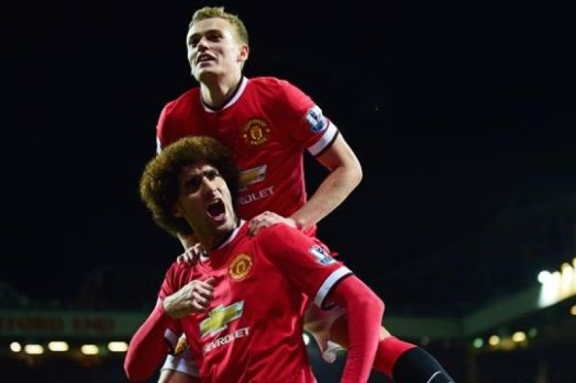 Marouane Fellaini menjaringkan gol pertama United dengan merembat masuk hantaran Ander Herrera pada minit ke-21.