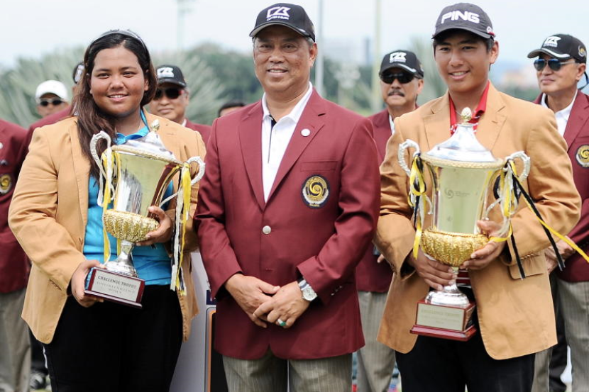 Galven dan Nur Eliana masing-masing MENERIMA biasiswa Yayasan Golf Amal TSM bernilai RM$50,000 dan RM$40,000 untuk mengikuti latihan di akademi golf yang diiktiraf serta pendedahan di pelbagai kejohanan.