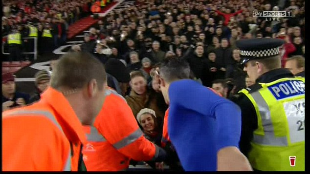 Namun pemain dari Belanda itu kemudian berjalan ke satu bahagian stadium yang dikhaskan untuk penyokong MU sebelum membuka jersinya dan menyerahkan pakaian itu kepada seorang remaja bertuah.