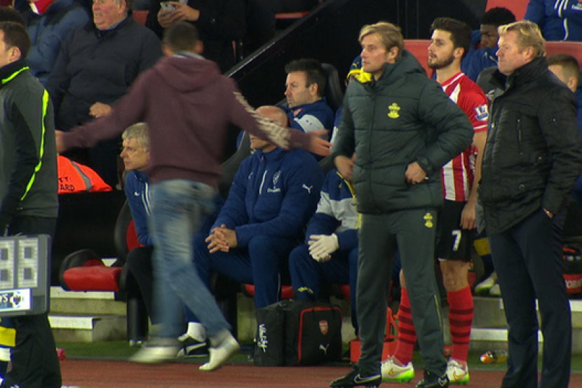 ARSENE WENGER diserang oleh seorang penyokong selepas Arsenal tewas 2-0 kepada Southampton di Stadium St Mary pada Khamis.