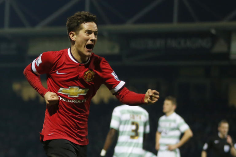 Pemain Manchester United, Ander Herrera meraikan kejayaannya selepas menjaringkan gol pembukaan ketika perlawanan bola sepak Piala FA di Stadium Huish Park, Yeovil pada Ahad. Keputusan menyaksikan Manchester United menewaskan Yeovil Town 2-0.
