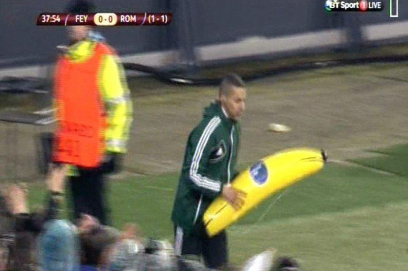 BINTANG Roma, Gervinho menjadi mangsa rasis penyokong bola sepak apabila dia dibaling dengan pisang gergasi ketika skuadnya menentang Feyenoord dalam aksi Liga Eropah.