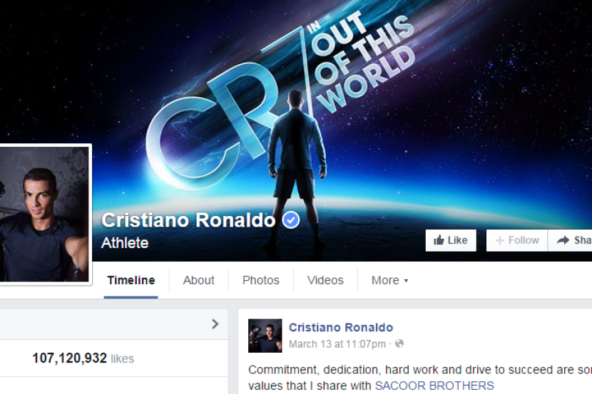Menurut carta yang didedahkan juga, Ronaldo berjaya memintas lama Facebook kelabnya, Real Madrid dengan kelebihan 83 juta pengikut.