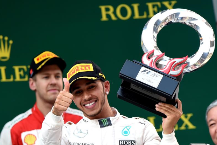 PELUMBA Mercedes, Lewis Hamilton mengungguli perlumbaan Formula Satu (F1) Grand Prix China di Shanghai di hadapan rakan sepasukannya, Nico Rosberg.