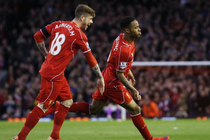 Sterling (kanan) menjaringkan gol awal untuk Liverpool.