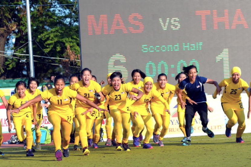 Pasukan wanita Malaysia meraih emas pada Sukan SEA di Myanmar 2013.