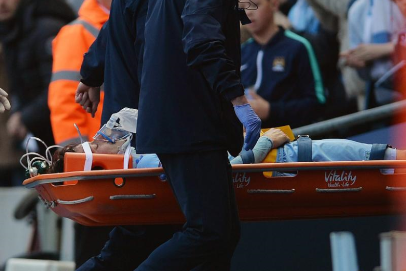 Silva diusung keluar padang selepas cedera di bahagian muka terkena siku pemain West Ham.